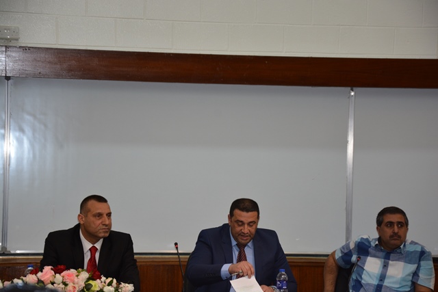 في بداية الجلسة رحب السيد العميد بالسادة والسيدات الحضور ودعاهم للوقوف لقراءة سورة الفاتحة على ارواح شهدائنا الابرار وعلى روح فقيد الكلية الاستاذ الشهيد د. طالب جاسم .