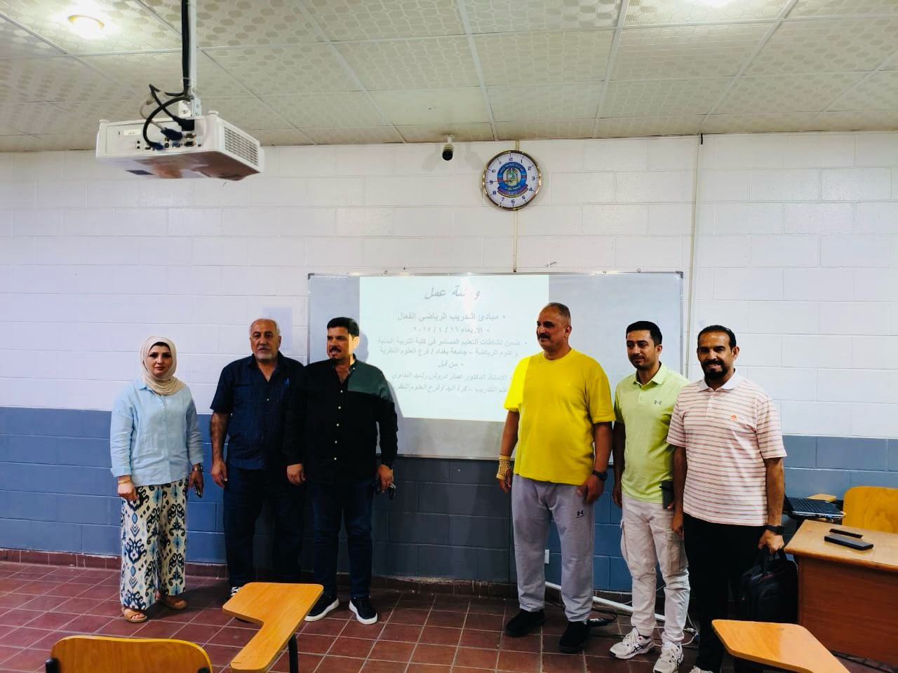 اقام فرع العلوم النظرية يوم الاثنين الموافق (٢٠٢٥/٤/٢١) ورشة عمل بعنوان (مبادئ التدريب الرياضي الفعال) القاها الاستاذ الدكتور عمار دروش رشيد تناولت موضوع مبادئ التدريب الفعال من خلال طرح تساؤلات اولية كمقدمة لتلك المبادئ ومن اهمها الاستجابة الفسيولوجية للتمرين وما تتضمنه من متطلبات خاصة للأداء منها ما هو بدني حركي مهاري خططي نفسي بحكم الخصائص الوظيفية الخاصة لكل استجابة فسيولوجية.