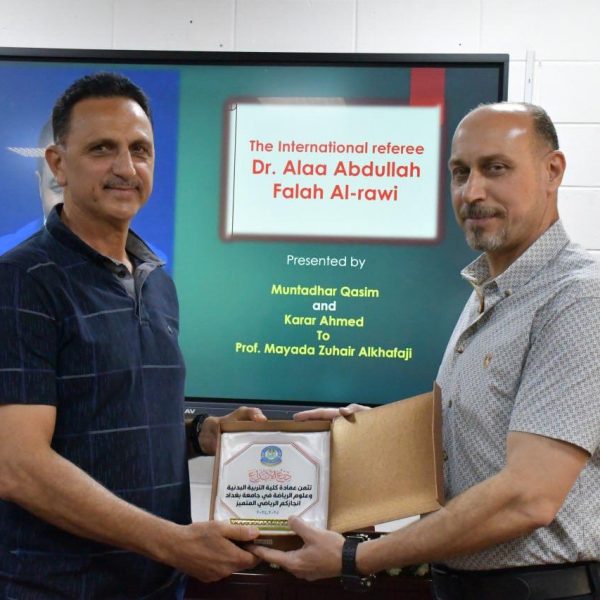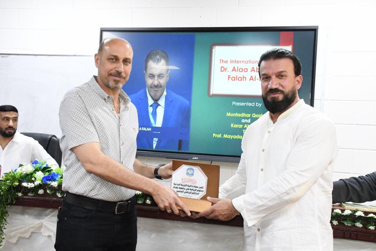برعاية السيد عميد كلية التربية البدنية وعلوم الرياضة في جامعة بغداد الاستاذ الدكتور صباح قاسم خلف اقام فرع العلوم النظرية بالتعاون مع شعبة الدراسات العليا حلقة نقاشية في ختام كورس اللغة الإنكليزية لطلبة الدراسات العليا (الماجستير) بعنوان (الإنجازات الرياضية العراقية الأولمبية والبارالمبية الواقع والطموح و تحت شعار الانجاز الرياضي المتميز ) .
