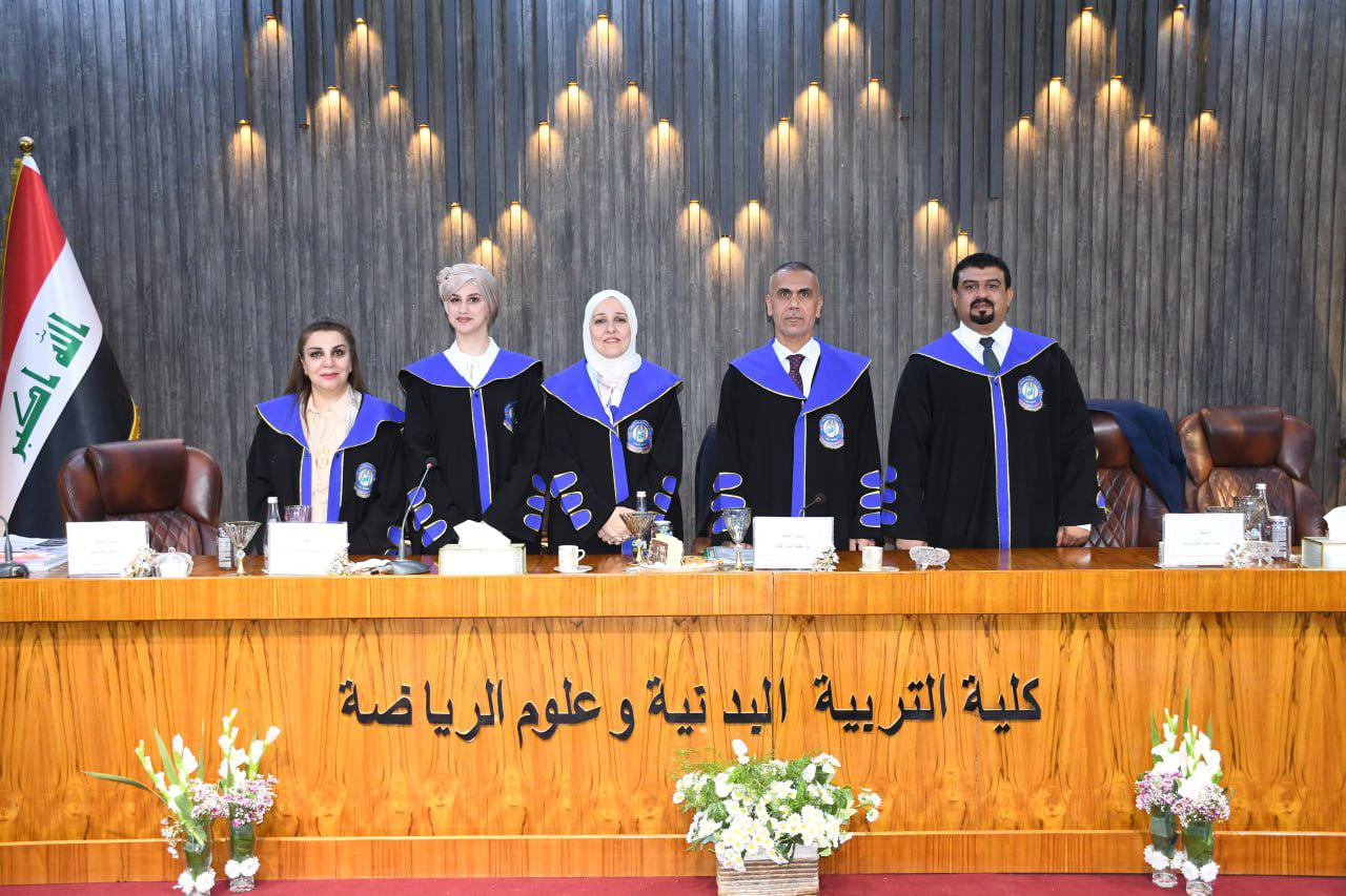 ناقشت كلية التربية البدنية و علوم الرياضة في جامعة بغداد رسالة ماجستير للطالبة (لينا ياسين عبدالغني) بعنوان (تعزيز التعلم لحركة الذراعين بجهاز مساعد وتأثيره في مستوى أداء السباحة الحرة للطالبات) و تألفت لجنة المناقشة من :