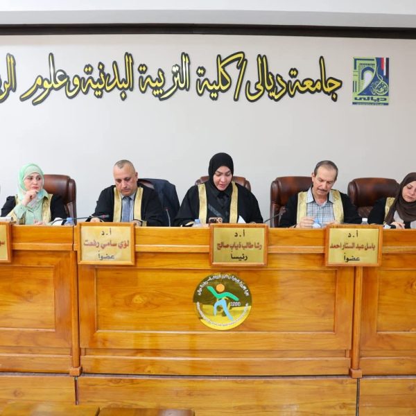 شارك الأستاذ الدكتور لؤي سامي رفعت التدريسي وأمين مجلس كلية التربية البدنية وعلوم الرياضة – جامعة بغداد، في مناقشة أطروحة الدكتوراه للطالبة سجى ستار قدوري والموسومة: تأثير تدريبات العتبة اللاهوائية المصاحبة للمكمل الغذائي (BCAA) في بعض المؤشرات الوظيفية والقابليات البيوحركية والمهارات الهجومية المركبة بكرة السلة للشباب، والتي جرت يوم الاثنين الموافق (٢٠٢٥/٨/١٨) في كلية التربية البدنية وعلوم الرياضة – جامعة ديالى.