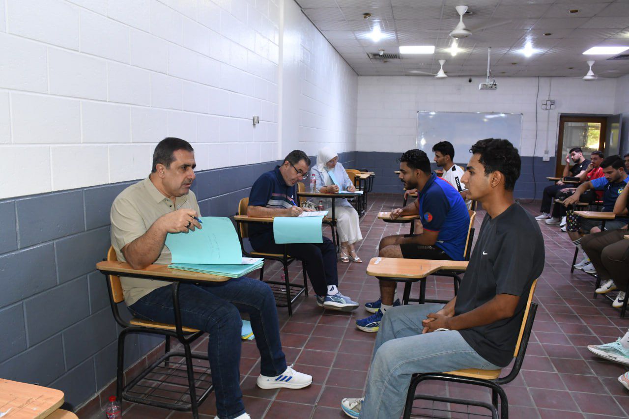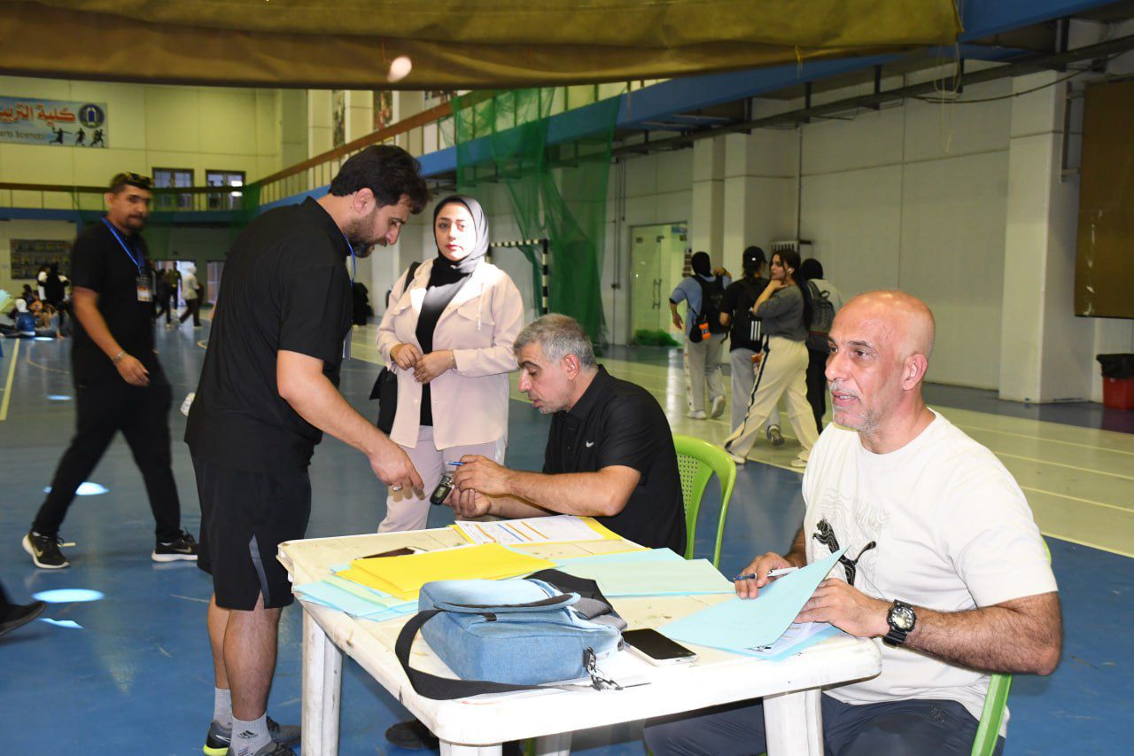 تفقد السيد عميد كلية التربية البدنية وعلوم الرياضة في جامعة بغداد الاستاذ الدكتور صباح قاسم خلف والسادة اعضاء مجلس كلية،  اليوم الاربعاء الموافق (٢٠٢٥/١٠/٨) اختبارات (الوجبة الرابعة) للطلبة للمتقدمين على القبول المباشر للعام الدراسي (٢٠٢٥_٢٠٢٦) بمشاركة (١٢٠)متقدم من الذكور والاناث.