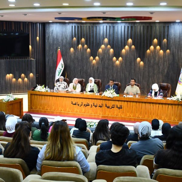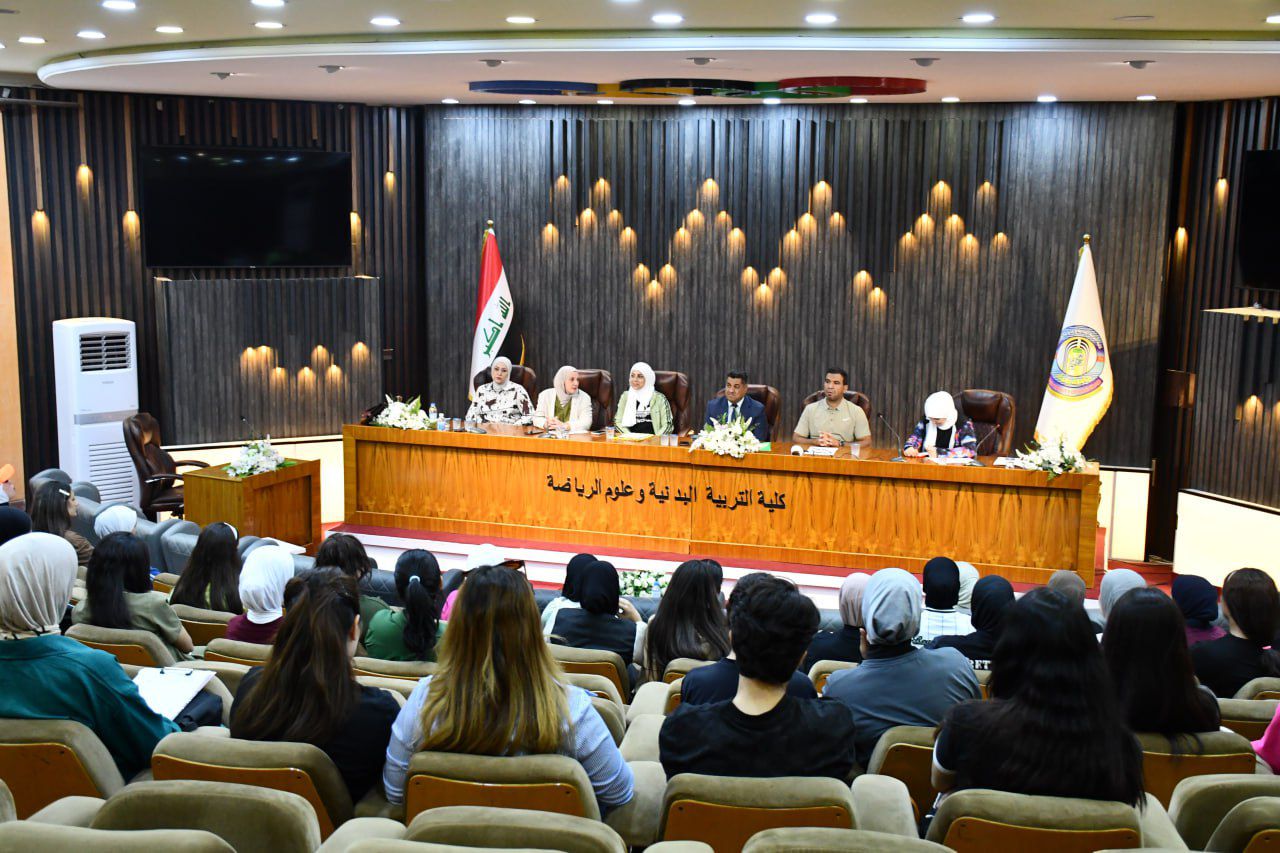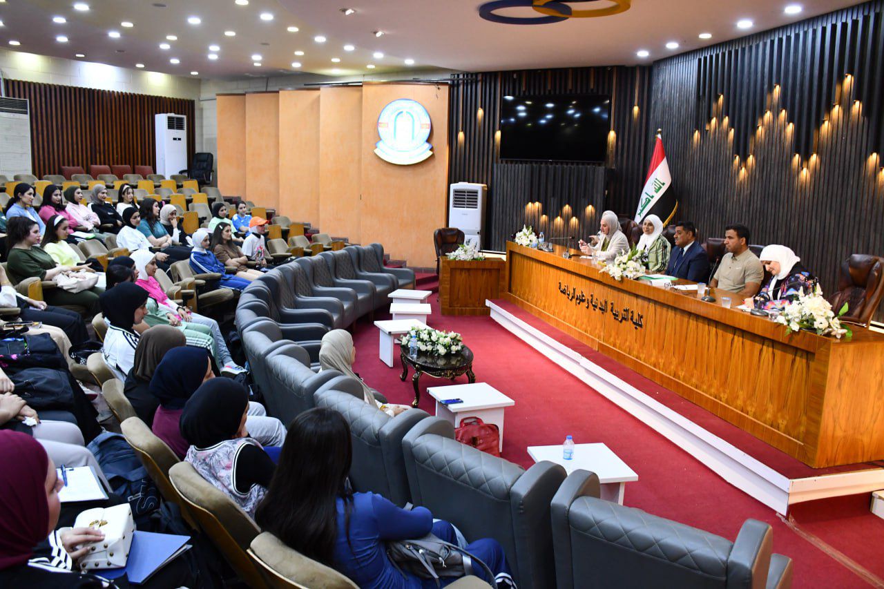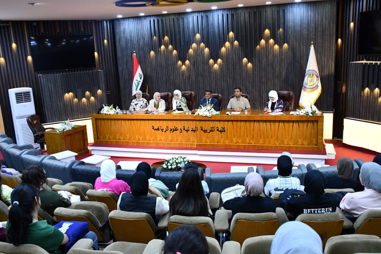 اجتمع السيد عميد كلية التربية البدنية و علوم الرياضة في جامعة بغداد الاستاذ الدكتور صباح قاسم خلف بطالبات المرحلة الرابعة وذلك ضمن سلسلة اللقاءات التوجيهية التي تنظمها الكلية مع بداية العام الدراسي (٢٠٢٥_٢٠٢٦)