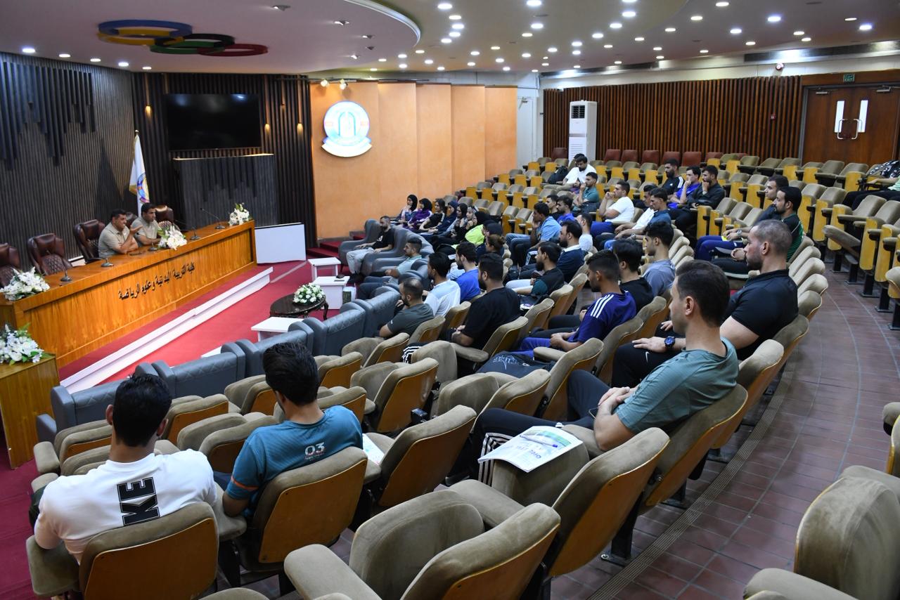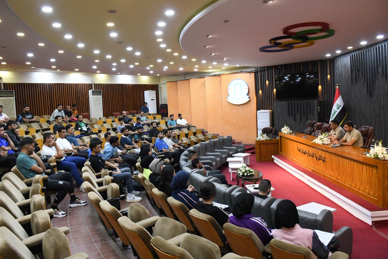 تزامنناً مع بدء الدوام لطلبة الدراسة المسائية اجتمع السيد عميد الكلية الاستاذ الدكتور صباح قاسم خلف رفقة السيد رئيس فرع العلوم النظرية الاستاذ الدكتور فالح هاشم فنجان بطلبة الدراسة المسائية للسنة الدراسية (٢٠٢٥_٢٠٢٦) على قاعة المناقشات الكبرى.