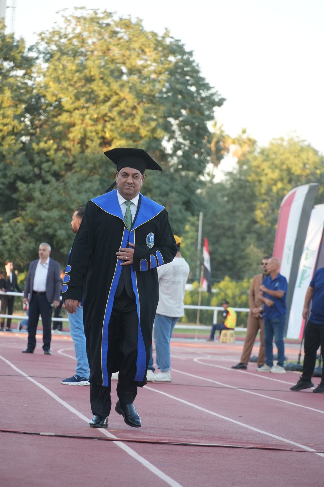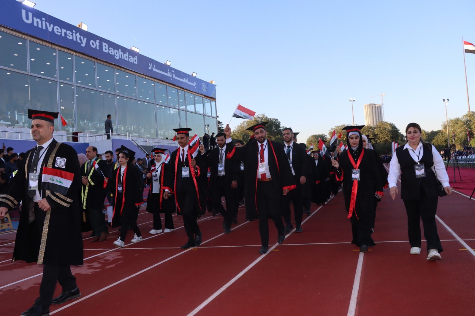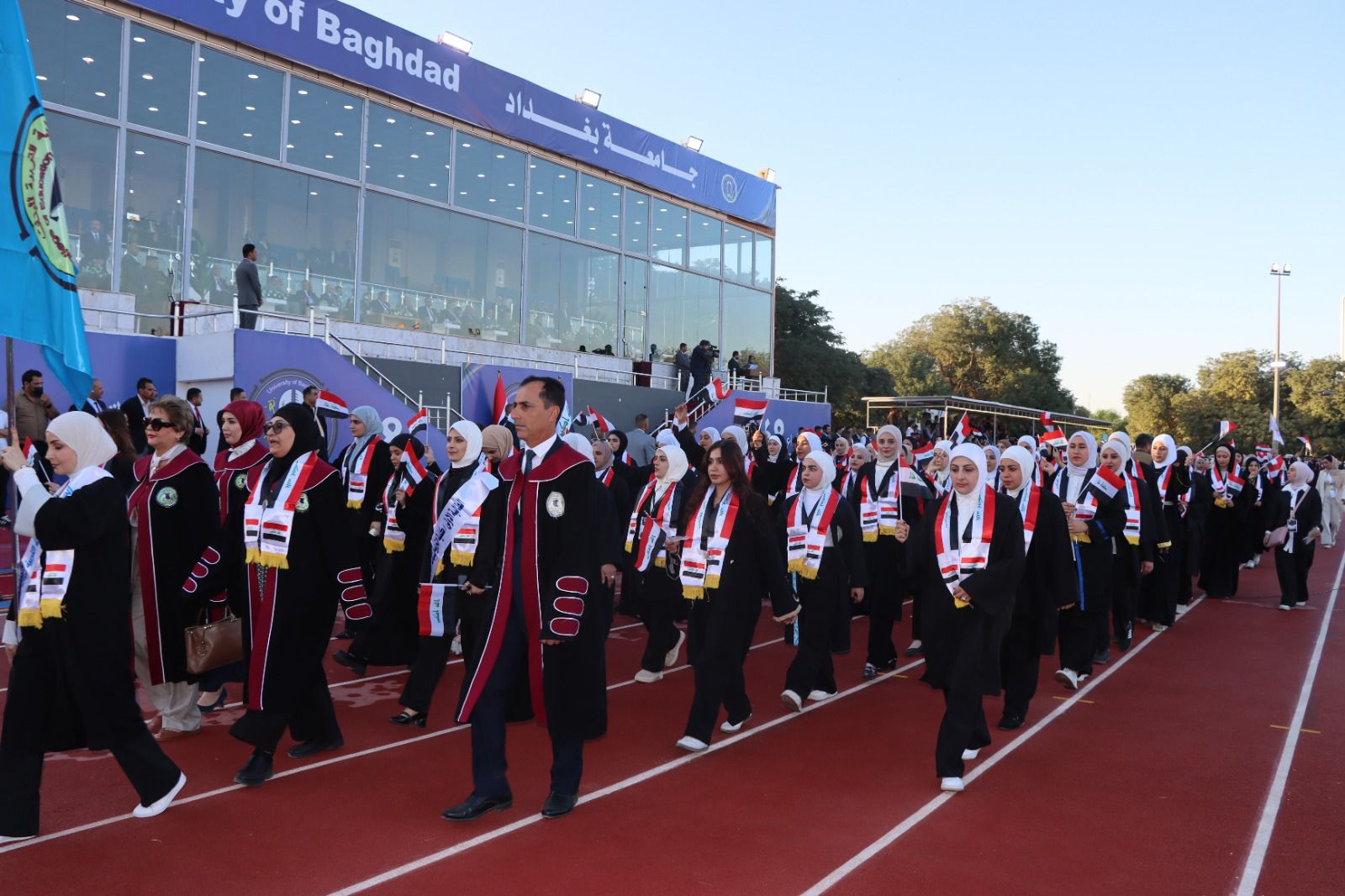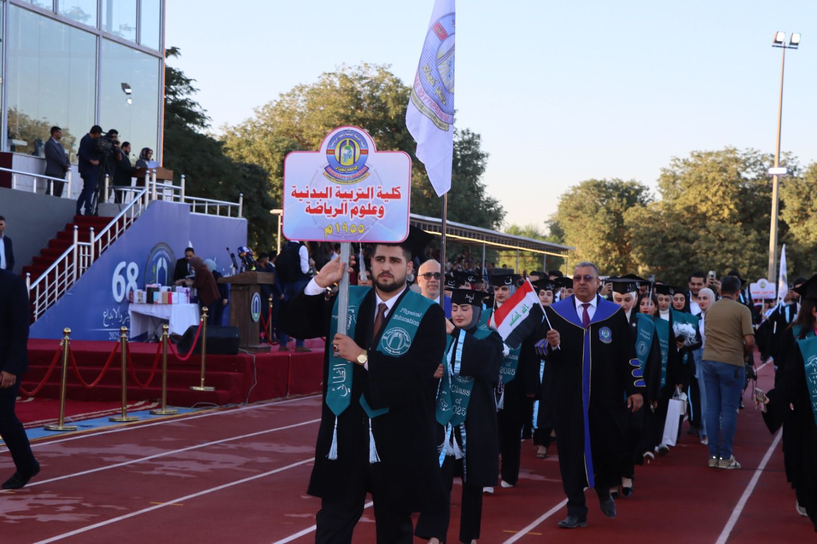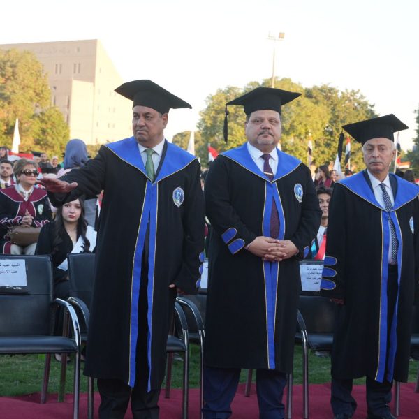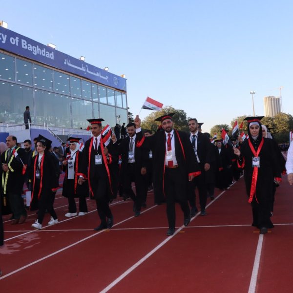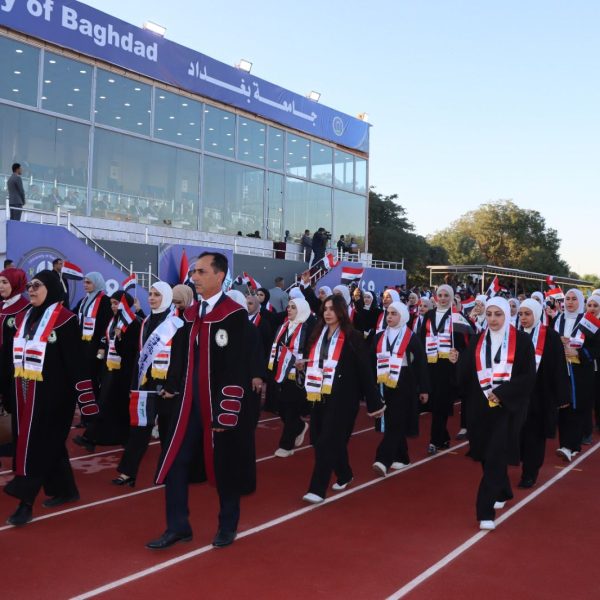 كما أشاد السيد رئيس جامعة بغداد بجهود كلية التربية البدنية وعلوم الرياضة في تنظيم واستضافة الحفل المركزي، مثمنًا حرصها على إخراج هذا الحدث الأكاديمي الكبير بصورة تليق بعراقة جامعة بغداد ومكانتها الرائدة في التعليم العالي العراقي.