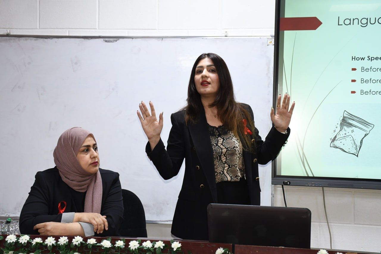 برعاية السيد عميد الكلية الاستاذ الدكتور صباح قاسم خلف وضمن فعاليات الأسبوع العراقي لمكافحة المخدرات، واستنادا الى توجيهات وزارة التعليم العالي والبحث العلمي، نظّمت اللجنة العلمية للغة الإنكليزية في كلية التربية البدنية وعلوم الرياضة ورشة تثقيفية بعنوان: “مخاطر المخدرات وسبل الوقاية والعلاج”، وذلك يوم الأحد الموافق (٢٠٢٥/١١/١٦)