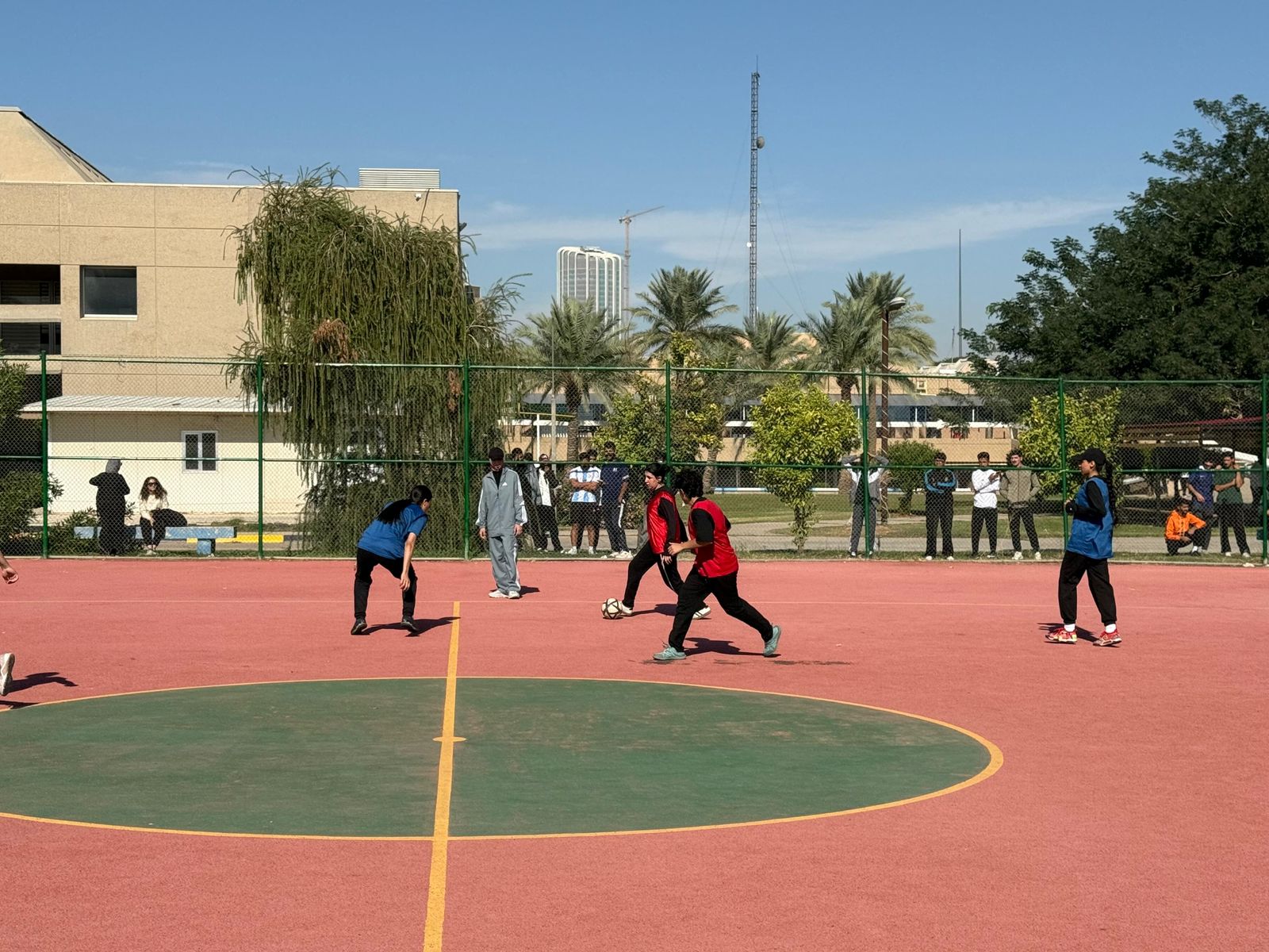 بحضور السيد عميد كلية التربية البدنية و علوم الرياضة في جامعة بغداد الاستاذ الدكتور صباح قاسم خلف و السادة اعضاء مجلس الكلية أقام فرع الألعاب الفرقية المباراة النهائية لبطولة خماسي كرة القدم للطالبات وسط حضور عدد من الطالبات ومنتسبي الفرع.