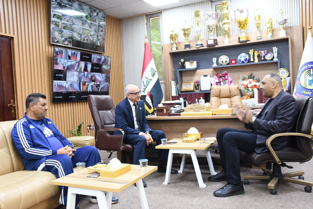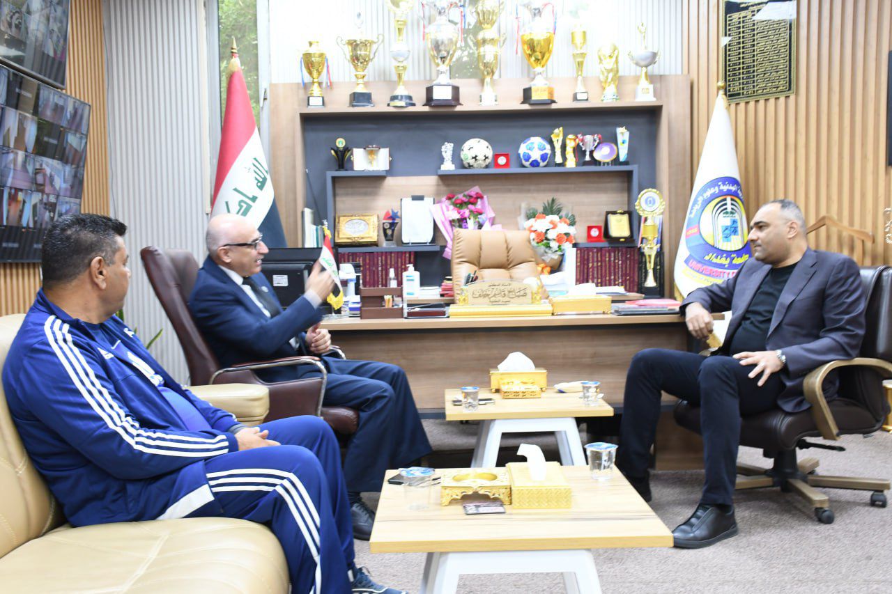 استقبل السيد عميد كلية التربية البدنية وعلوم الرياضة في جامعة بغداد، الأستاذ الدكتور صباح قاسم خلف، صباح اليوم الثلاثاء (٢٥ تشرين الثاني ٢٠٢٥)، السيد رئيس جهاز الإشراف والتقويم العلمي في وزارة التعليم العالي والبحث العلمي، الأستاذ الدكتور صلاح الفتلاوي، يرافقه السيد رئيس جامعة بغداد، الأستاذ الدكتور بهاء إبراهيم إنصاف، في زيارة رسمية إلى الكلية.