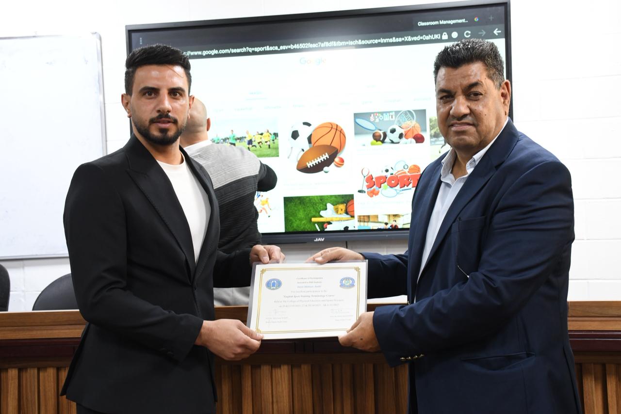 بحضور السيد عميد كلية التربية البدنية و علوم الرياضة في جامعة بغداد الاستاذ الدكتور صباح قاسم خلف أقامت شعبة الدراسات العليا حلقة علمية في مادة اللغة الإنكليزية بعنوان (Sports Sponsorship Companies) وذلك ضمن برنامج الحلقات العلمية المخصصة لطلبة الدراسات العليا.