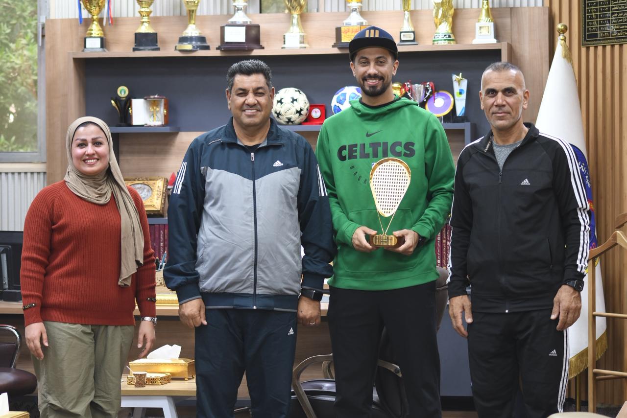 كرّم السيد عميد كلية التربية البدنية وعلوم الرياضة في جامعة بغداد الأستاذ الدكتور صباح قاسم خلف التدريسي في الكلية المدرس مساعد حسنين عبيد دخيل ، وذلك تقديرًا لإنجازه الرياضي المتمثل بفوزه بلقب بطولة قطر للمحترفين للإسكواش لعام (2025)