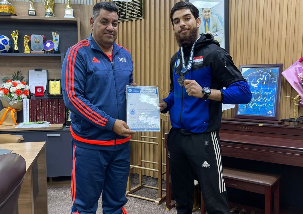 استقبل السيد عميد كلية التربية البدنية و علوم الرياضة في جامعة بغداد الاستاذ الدكتور صباح قاسم خلف الطالب في الكلية علي اكبر صباح بعد تحقيقة إنجازًا مميزًا بحصوله على المركز الثاني في بطولة العالم للباغوث، التي أُقيمت في تركيا بمشاركة نخبة من المتنافسين من مختلف دول العالم.