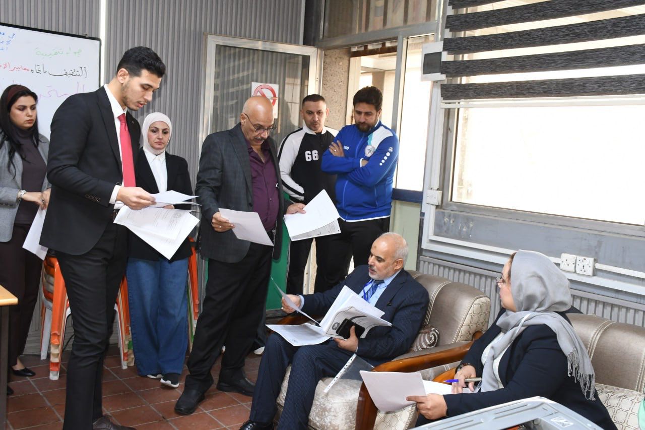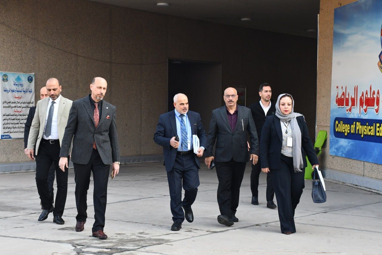 استقبل السيد عميد كلية التربية البدنية و علوم الرياضة في جامعة بغداد الاستاذ الدكتور صباح قاسم خلف،لجنة الاعتماد المؤسسي التابعة لوزارة التعليم العالي والبحث العلمي، في زيارة رسمية تهدف إلى متابعة تطبيق المعايير الوطنية للاعتماد المؤسسي، والاطلاع على مستوى الإلتزام بها في أقسام الكلية.