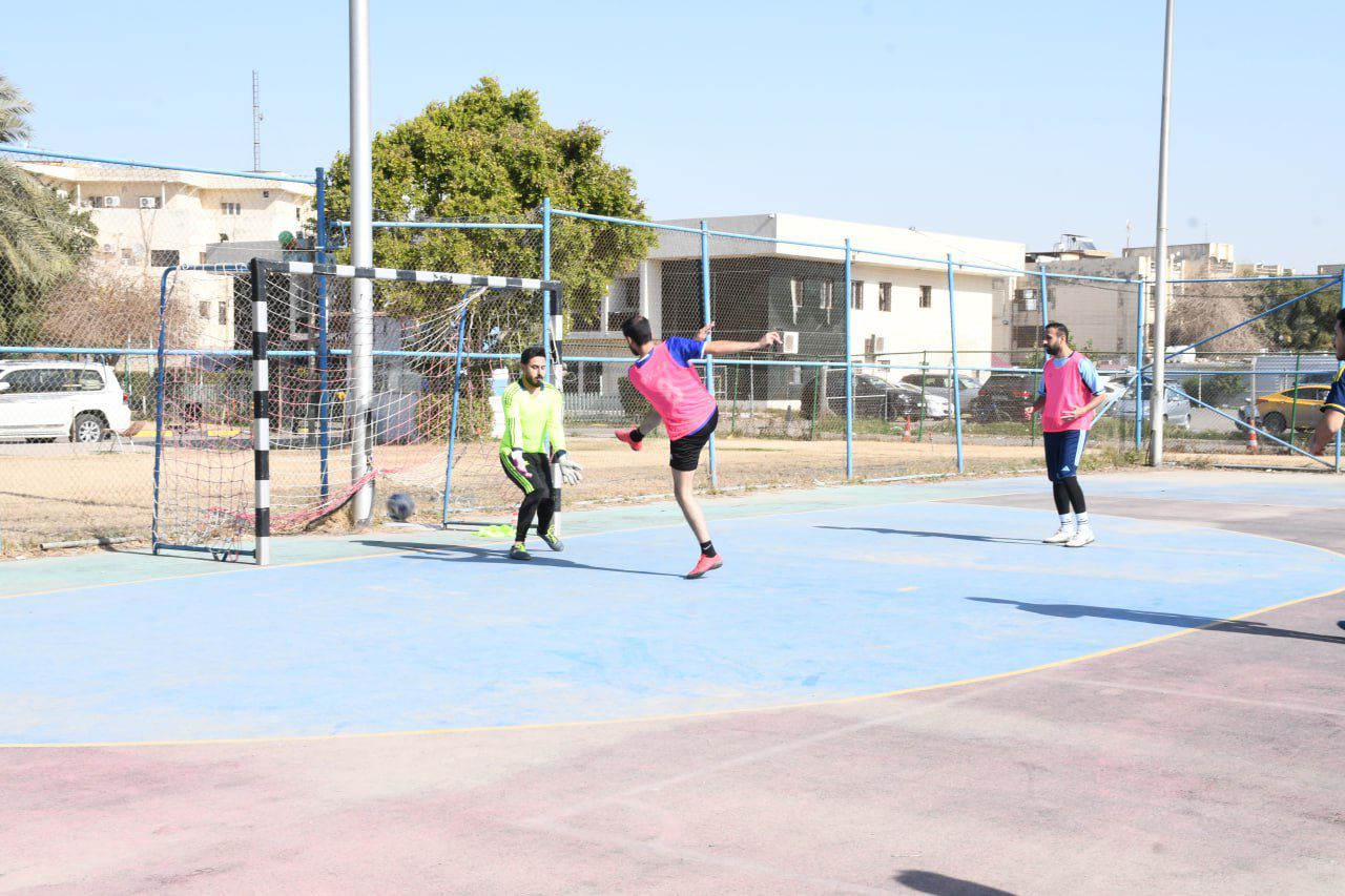 أُقيمت اليوم الاحد الموافق (٢٠٢٦/١/٢٥) مباراة بخماسي كرة القدم جمعت بين طلبة مرحلتي الماجستير والدكتوراه في كلية التربية البدنية وعلوم الرياضة بجامعة بغداد، وذلك على ملعب الكلية، وبحضور عدد من التدريسيين والطلبة.