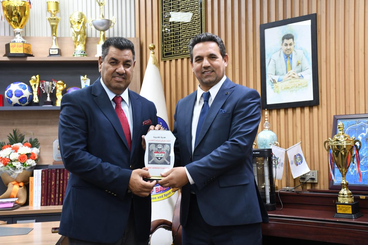 استقبل السيد عميد كلية التربية البدنية وعلوم الرياضة في جامعة بغداد الاستاذ الدكتور صباح قاسم خلف رفقة السيد معاون العميد للشؤون العلمية الاستاذ الدكتور محمد عبدالحسين عطية وفد منتخب العراق للاكروس، وذلك بمناسبة مشاركته المشرفة في بطولة آسيا للاكروس التي أُقيمت في الرياض – المملكة العربية السعودية، وتحقيقه الميدالية الفضية في إنجاز يُعدّ الأول من نوعه على هذا المستوى القاري.