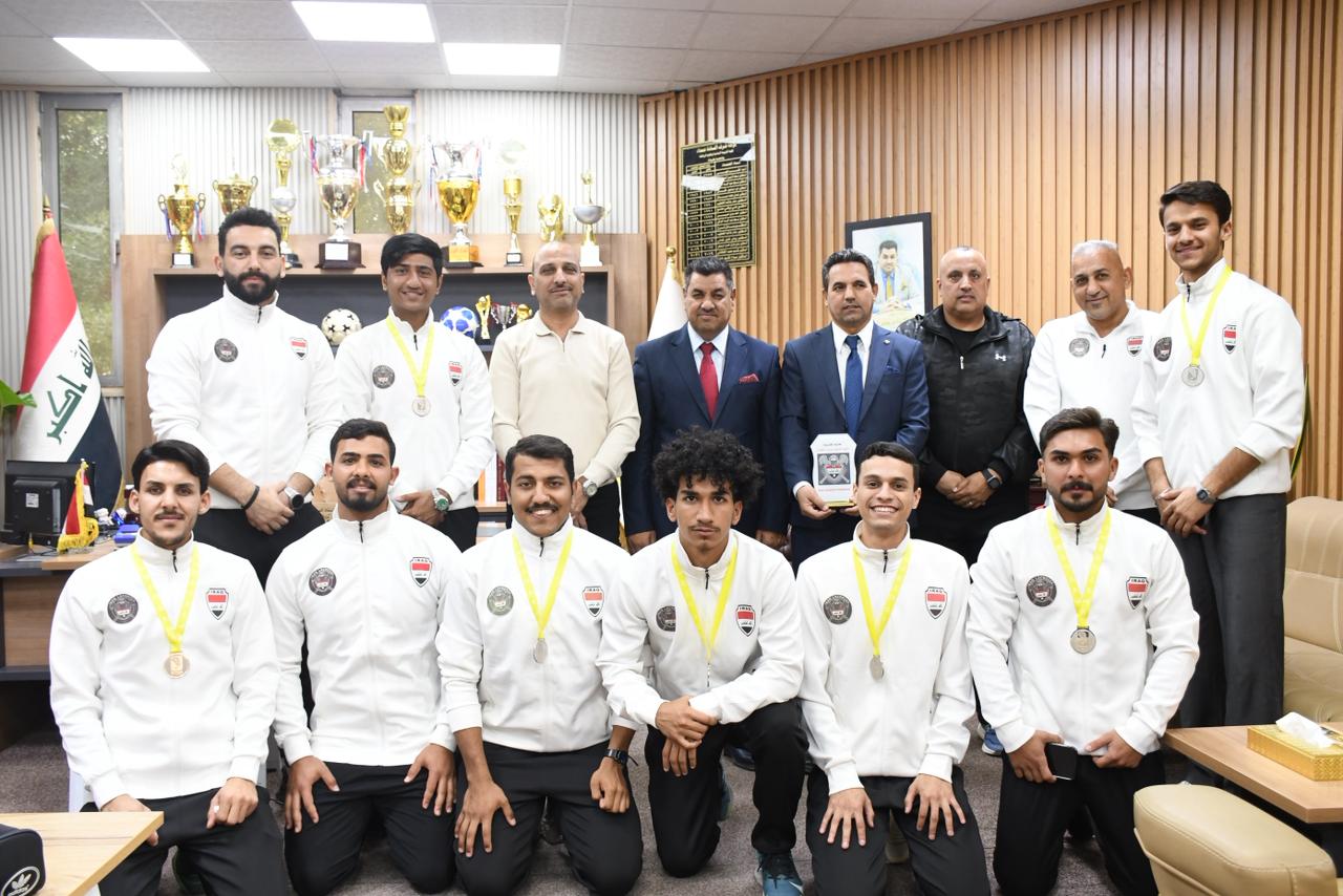 وخلال اللقاء، عبّر السيد العميد عن فخره واعتزازه بهذا الإنجاز الرياضي المتميز، مؤكدًا أن ما حققه المنتخب يعكس المستوى المتقدم الذي وصل إليه طلبة الكلية، لاسيما وأن عدداً من لاعبي المنتخب هم من طلبة كلية التربية البدنية وعلوم الرياضة، الذين جمعوا بين التفوق الأكاديمي والتميز الرياضي.
