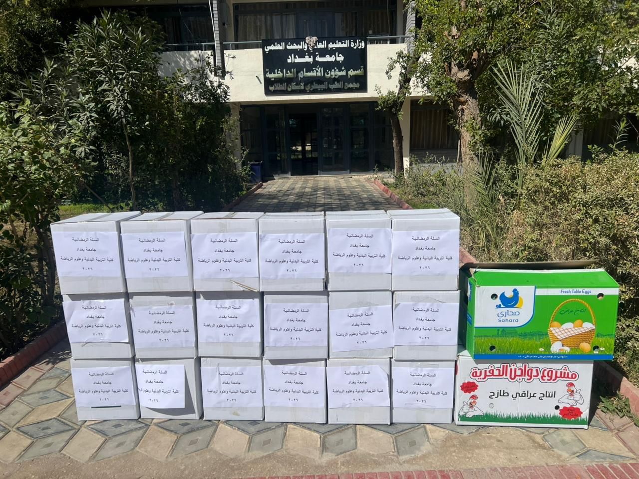 ضمن نهجها الإنساني المتواصل، وبرعاية مباشرة من الأستاذ الدكتور صباح قاسم خلف عميد كلية التربية البدنية وعلوم الرياضة في جامعة بغداد، واصلت اللجنة العليا لخدمة المجتمع والأعمال التطوعية تنفيذ المرحلة الثانية من حملة (سلة رمضان) والتي خُصصت هذه المرة لدعم طلبة الأقسام الداخلية في الكلية.